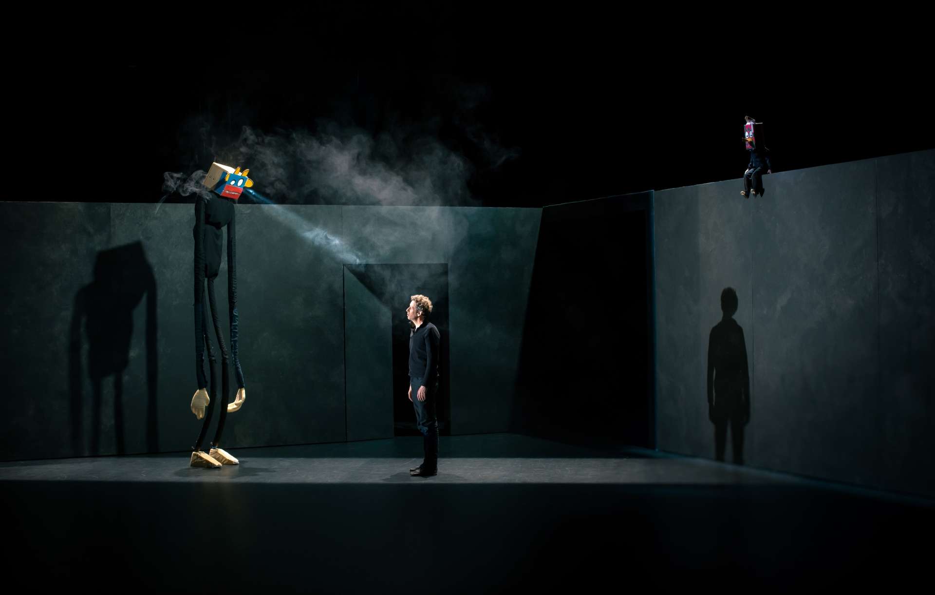 Un jour que la vie fait mal, Étienne Saglio se jette sur un carton, fabrique un masque, entre en métamorphose, et commence son grand voyage.
